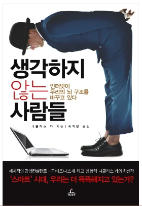세계적인 IT 미래학자이자 인터넷의 아버지로 불리는 니콜라스 카의 ‘생각하지 않는 사람들’은 수많은 정보를 어디서든 손쉽게 구할 수 있는 ‘스마트’시대를 만든 인터넷이 가져온 부정적 변화에 대해 이야기 하고 있습니다. 저자는 인터넷을 통한 지식과 정보 접근 방식이 사고 방식에 영향을 미치고, 이것이 뇌 구조를 바꾸는 양상으로까지 이어지고 있음을 다양한 증거를 통해 다루고 있습니다.
