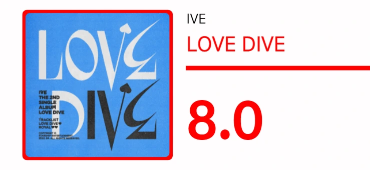 'LOVE DIVE'는 전작과 같이 특정한 단어 하나로 규정하기 어려운 작품이다. 청량? 몽환? 하이틴? 물 속으로 하강하는 듯한 합창과 함께 모든 잣대들은 침잠하고 매력적인 음악만이 남는다. 절제된 감정으로 내내 담담하게 가사를 뱉다 서늘한 유니즌 코러스가 쏟아지는 구성이 선사하는 감정은 낯설고 기묘하지만, 치밀하게 다듬어진 세련된 사운드 프로덕션은 아이브가 선보이는 낯선 바다로 대중과 리스너 모두를 이끈다. 이로써 탄탄한 완성도의 음악을 기반으로 시도된 아이브의 실험은 대중적으로나 비평적으로나 상당한 호평을 이끌어낼 만한 작품을 탄생시켰다.