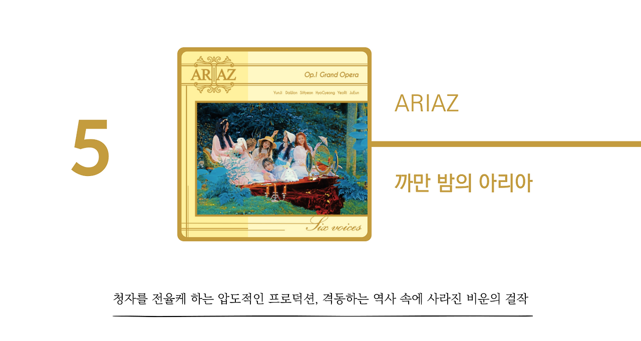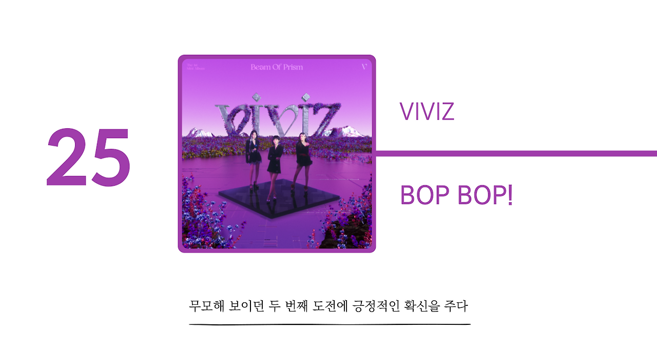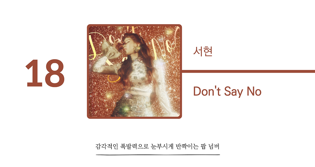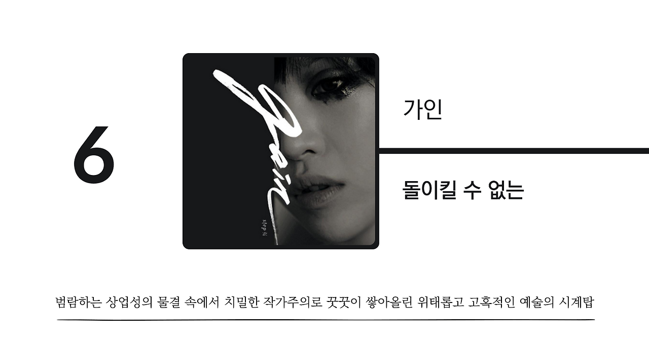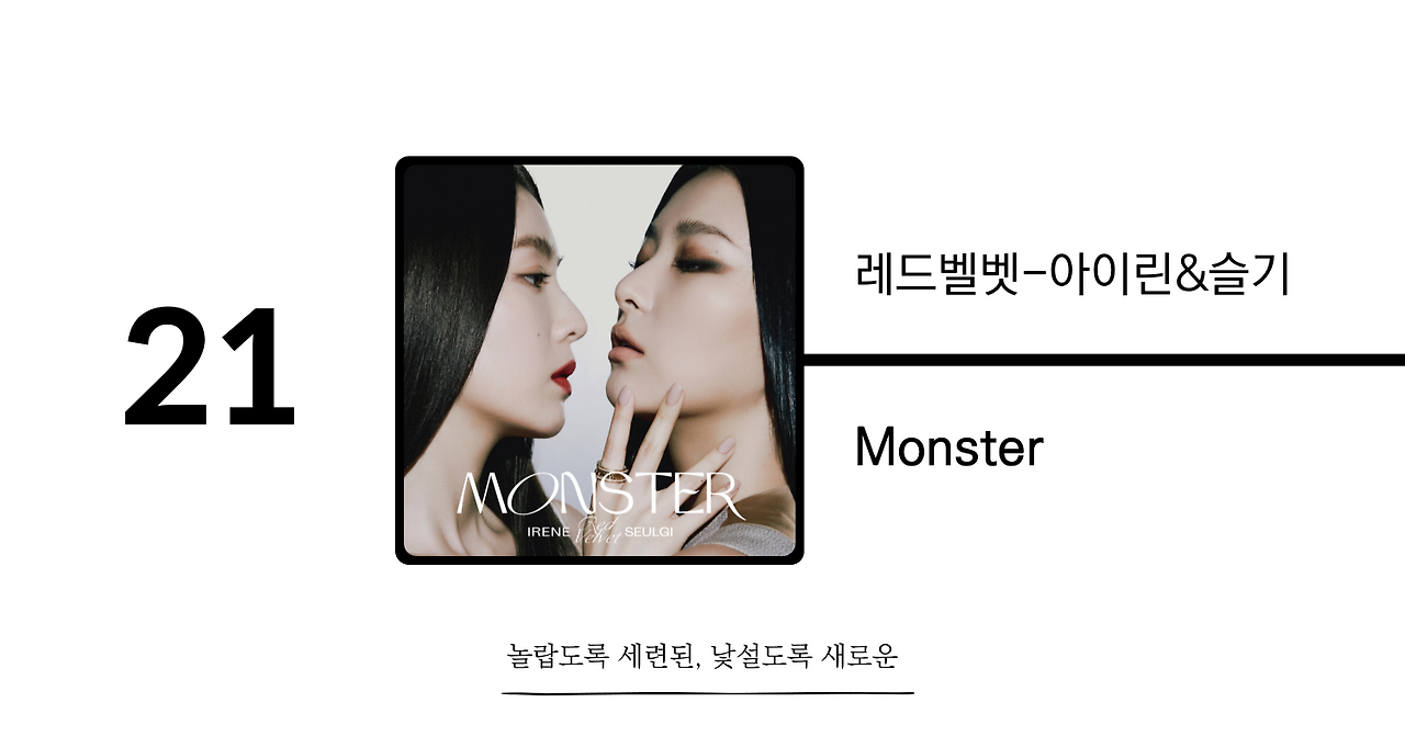 - 케이팝 메타버스를 이끄는 에스파의 파급력은 확실히 대단한 상징성을 띠고 있지만 단지 그 이유만으로 평이한 SMP 트랙에 불과한 이 곡을 음악적으로 고평가할 수 없다고 판단해 제외했습니다.