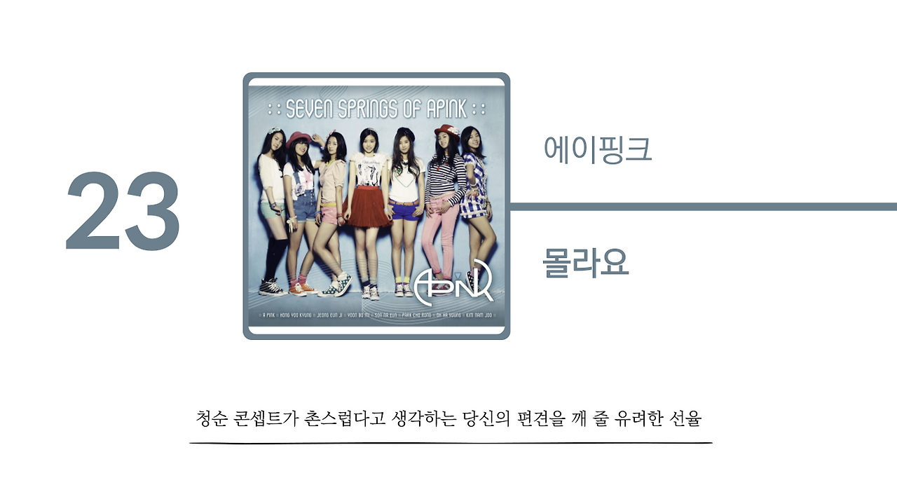 기나긴 케이팝의 역사는 수많은 별들을 낳았고, 그 별들이 탄생하는 순간을 지켜보는 일은 언제나 황홀합니다. <정라리의 케이팝읽기>는 본 기획에서 케이팝 걸그룹 역대 최고의 데뷔곡 30곡을 선정했습니다. 평가 기준에는 상징성, 시대성 등 다양한 요소들을 포함하였으나 트랙 자체의 음악적 완성도를 최우선적으로 고려하였습니다.
