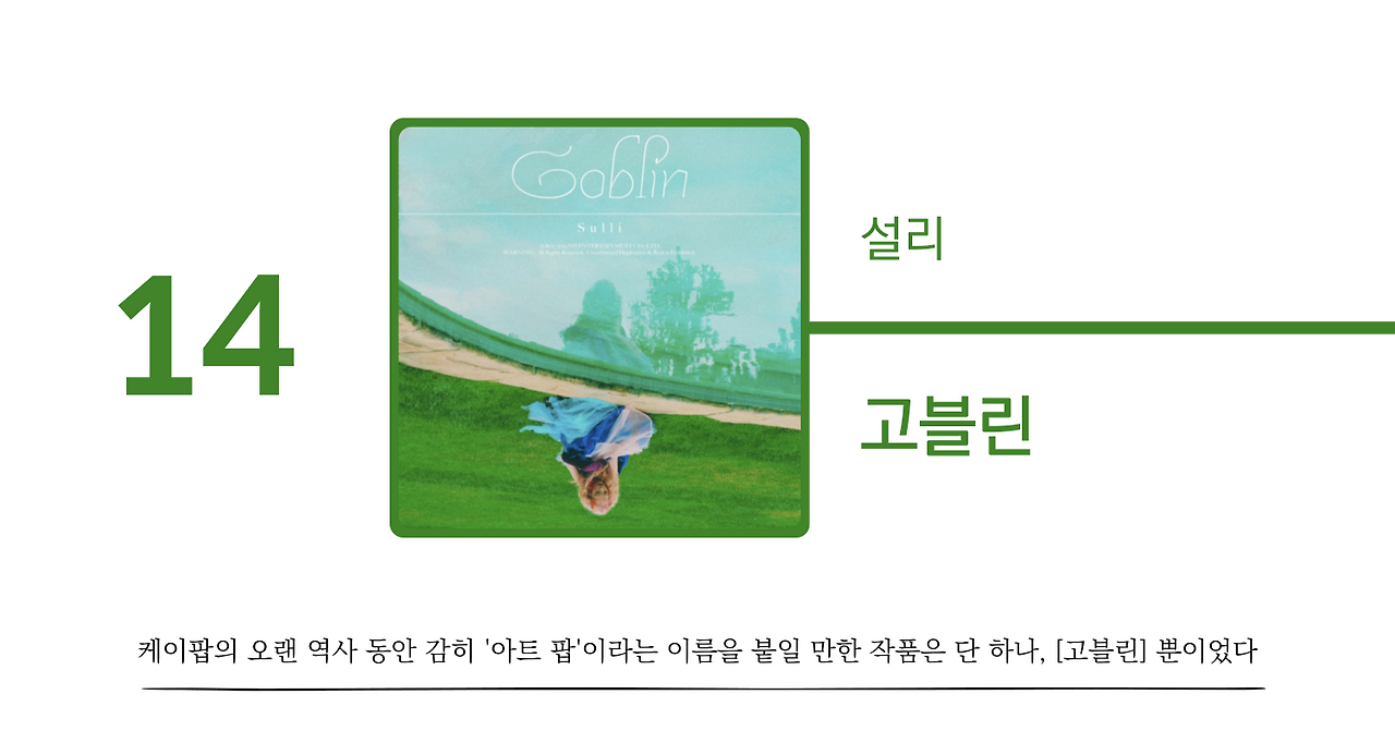 - 케이팝의 오랜 역사 동안 감히 '아트 팝'이라는 이름을 붙일 만한 작품은 단 하나, [고블린] 뿐이었다