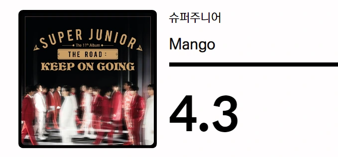 전작 'House Party'의 문법을 재현해 감각적인 베이스와 단순한 프레이즈를 결합시켜 빚어낸 펑키한 트랙으로 돌아온 슈퍼주니어. 그러나 망고라는 주제어와 펑키한 사운드가 어울리지 않아 애매모호한 인상만을 남기고, 전작과 차별화되지 못하는 동어반복 수준의 프로덕션 탓에 쉽사리 재생 버튼을 다시 누르기가 어렵다.