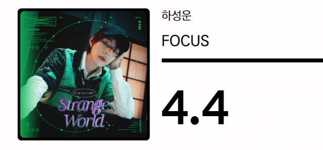 하성운, [Strange World], BPM엔터테인먼트&스윙엔터테인먼트, 2022하성운, 'FOCUS' : 4.4