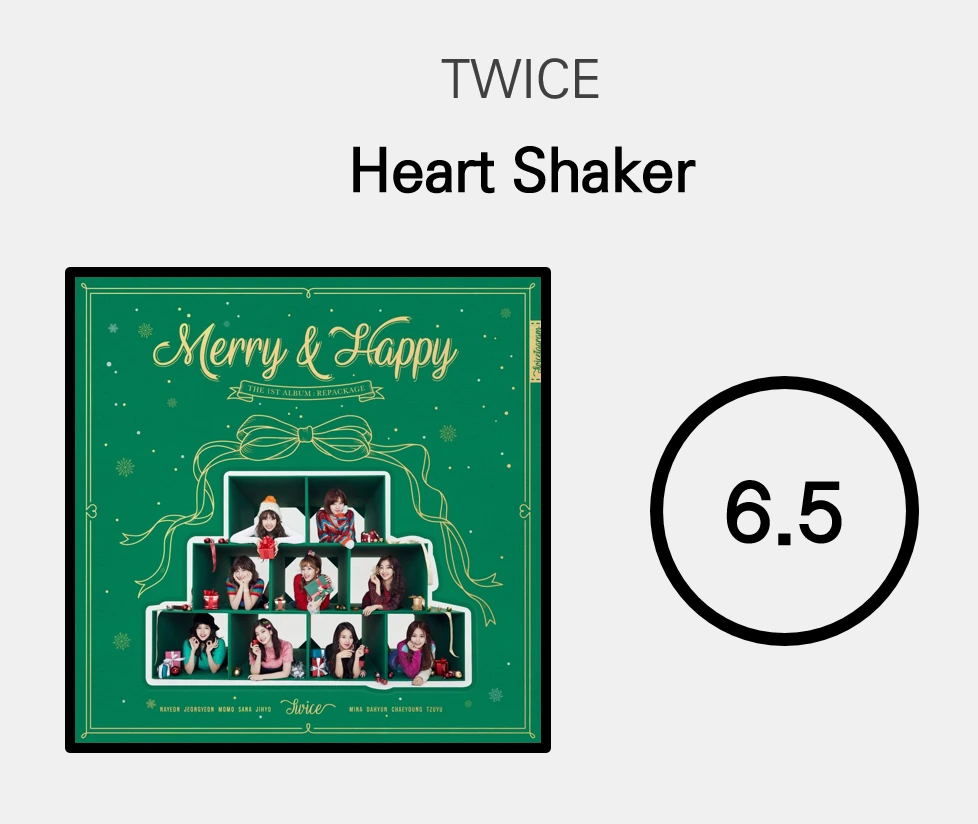시원한 멜로디라인과 함께 에너지 넘치는 기타 드라이브로 깔끔하게 곡을 전개한다. 부자연스러운 훅 어필과 어색한 킬링파트에 대한 집착을 버리고도 트와이스는 노련한 완급 조절과 매끄러운 구성이 돋보이는 팝 록을 만들어냈다. 코러스에서 하이노트로 찔러대는 바람에 약간 피로한 감은 있지만, 'Heart Shaker'는 여전히 무난하게 듣기 좋은 대중가요다.