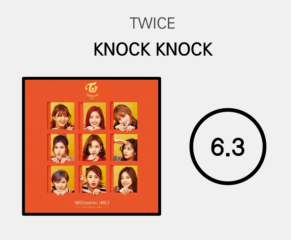 트와이스는 언제나 '쉽게 따라부를 수 있는' 쉽고 대중적인 음악을 지향해 왔고, 그 전형이 바로 'KNOCK KNOCK'이다. 드럼을 다소 무겁게 잡은 탓에 다소 올드하게 느껴지기는 하지만 직관적으로 진행되는 선명한 곡 구성과 깔끔하게 뽑은 코러스 덕분에 적당히 듣기 좋게 완성되었다. 그러나 인상적인 포인트나 사운드의 부재로 인해 곡은 흐릿한 인상으로 남는다.