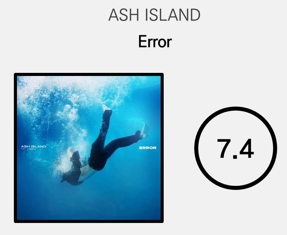 앰비션 뮤직의 이모 힙합 아티스트 애쉬 아일랜드(ASH ISLAND)는 주로 시원시원한 멜로디라인과 기타 드라이브를 앞세워 릴 핍(Lil Peep)에 대한 향수를 드러낸다. 그러나 그의 작업물은 대부분 애쉬 아일랜드라는 아티스트가 릴 핍과 비교했을 때 가진 차별점이 무엇인지에 대한 답을 들려주진 못했다. 그리고 루피(Loopy)와 함께한 새 싱글 'Error' 역시 그가 레퍼런스 삼은 릴 핍이나 포스트 말론의 그림자를 벗어나는 데는 실패했다. 하지만 이미 입증된 그의 멜로디 메이킹 능력은 부족한 오리지널리티를 충분히 메꿀 만한 퀄리티를 보여 준다. 이모 힙합에 특화된 대세 프로듀서 TOIL이 직조한 청량한 기타와 스트링 비트 위에 애쉬 아일랜드의 선명한 멜로디라인이 얹히고, 싱잉랩의 대표주자 루피가 곡에 대한 높은 이해도를 바탕으로 '맛깔난' 피처링을 더한 'Error'는 분명 훌륭한 이모 힙합 넘버이며, 탁월한 사운드와 깔끔한 멜로디가 어우러진 좋은 트랙이다.
