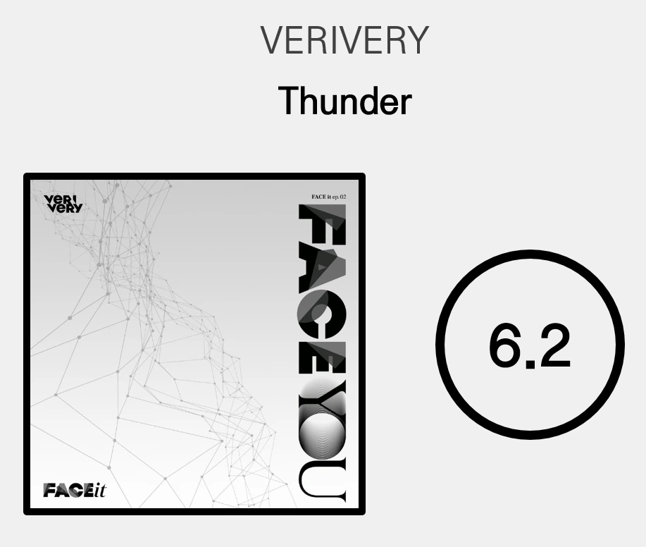 파워풀하고 화려한 신스가 역동적인 일렉트로닉 사운드를 구축한다. 묵직하게 깔리는 808 베이스 역시 효과적으로 곡의 긴장감을 조성한다. 그러나 3분 내내 숨쉴 틈도 없이 몰아치기만 하는 구성 탓에 완급 조절에 실패하고, 후렴도 명확하지 못한 까닭에 현란한 사운드로 무장했음에도 불구하고 'Thunder'는 큰 인상을 남기지 못한 채 끝나버리고 만다.