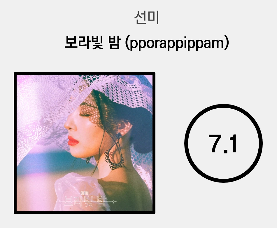 항상 리스너를 실망시켜온 적이 없는 선미답게, '보라빛 밤' 역시 뛰어난 완성도를 자랑한다. 이번 곡은 어느새 마이너한 장르들 중 가장 메이저한 장르가 되어 버린 시티팝을 차용했는데, 몽환적인 플루트 사운드가 대단히 매력적이다. 벌스와 프리코러스, 코러스 모두 균일한 퀄리티로 짜임새 있게 구성되었으며 선미 특유의 웅장하게 터지는 브라스 사운드는 자칫 루즈해질 수 있는 곡을 긴장감 있게 만들어 준다.