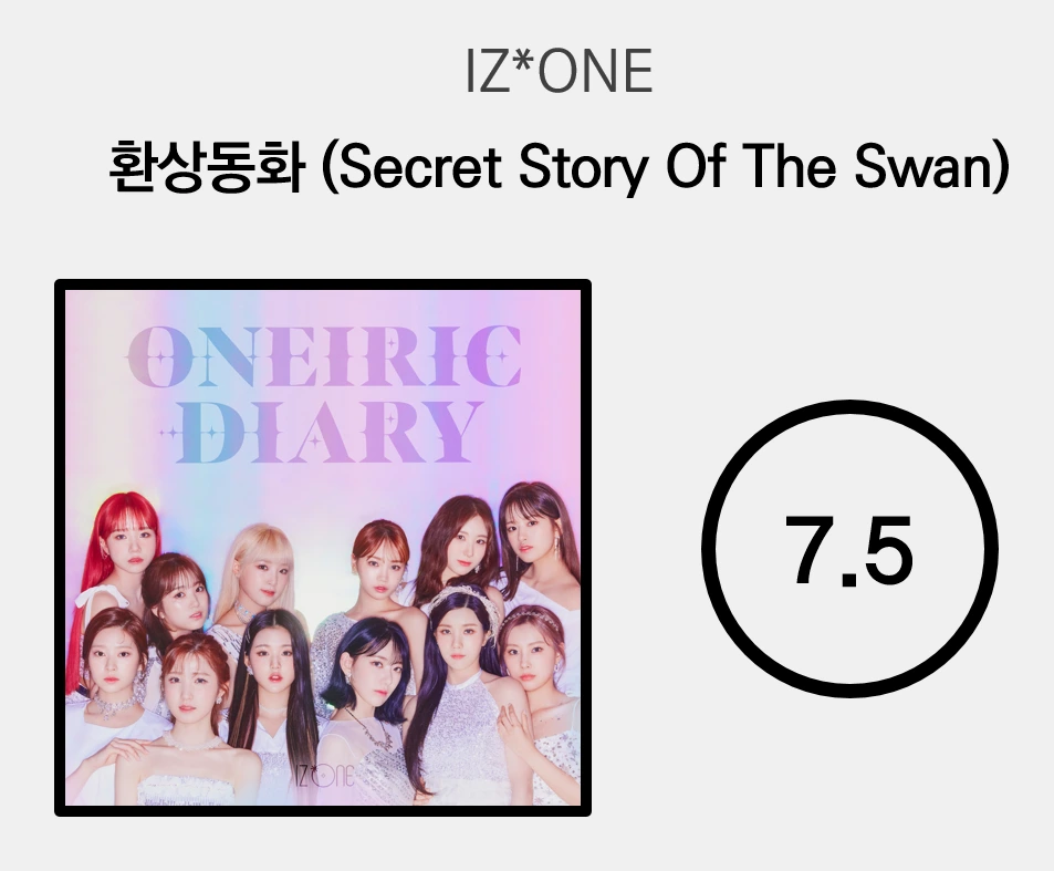 아이즈원은 언제나 흠잡을 데 없이 세련되고 깔끔한 EDM 넘버를 가지고 오는 그룹이었다. 같은 장르의 곡들을 비슷한 구성으로 채우면서도 사운드에 변화를 주어서 피로감을 제거하는 정교하고 영리한 프로듀싱 전략은 이번에도 유효했다. 걸그룹의 음악이라고 생각하기 어려울 만큼 묵직하고 공간감 넘치는 수려한 신스 사운드는 '환상동화'를 '라비앙로즈', '비올레타', 'FIESTA' 등 아이즈원의 다른 곡들뿐만 아니라 K-POP 씬의 타 걸그룹 음악과 차별화하는 데 성공한다. 그에 비해 미숙한 가창으로 인해 다소 힘이 빠지는 구간이 있는 것은 데뷔 이후부터 현재까지 여전히 아쉬운 부분이지만, 그 미숙함이 마치 의도된 장치인 양 곡의 전개 속에 자연스럽게 어울리도록 배치함으로써 그 한계를 어느 정도 극복해냈다. 이를 통해, '환상동화'는 2020년 K-POP 전체를 통틀어서도 기억에 남을 만한 완성도를 성취한 작품이 되었다.