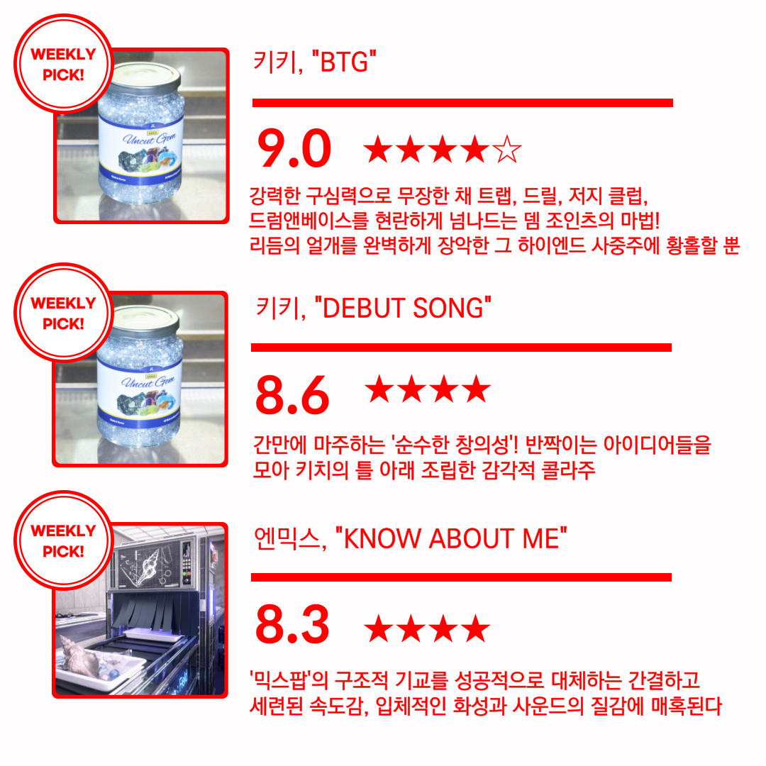 '믹스팝'의 구조적 기교를 성공적으로 대체하는 간결하고 세련된 속도감, 입체적인 화성과 사운드의 질감에 매혹된다