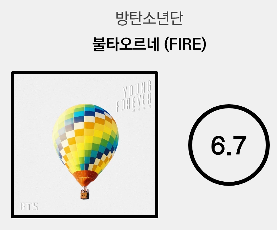 아무리 K-POP이 '듣는 음악'에서 벗어나 '보는 음악'의 영역에 도달했다지만, 음악적 완성도를 이 정도까지 포기해 버리면 안 된다. 더군다나 K-POP을 대표하는 그룹인 방탄소년단이기에 그 실망감은 더하다. 국제 사회에서 성공한 한국인에게 한국인으로서의 정체성을 적극적으로 드러내고 국위선양할 것을 요구하는 대한민국의 뿌리깊은 국수주의가 방탄소년단을 망쳤다. 라틴풍의 리듬 위에 속된 말로 '뽕끼' 넘치는 촌스러운 신스가 깔리고, 멤버들은 '얼쑤 좋다', '지화자', '덩기덕 쿵더러러' 같은 한국적 추임새를 과시하듯 쏟아낸다. 그러나 모든 요소는 서로 불협화음을 일으키며 그저 실소만을 유발한다.