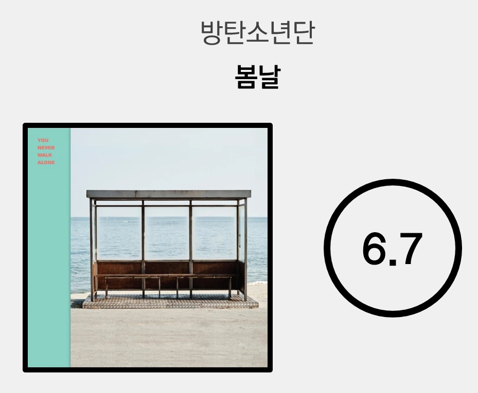 힙합 아이돌 그룹을 표방하며 등장한 데뷔 초나 일렉트로닉 뮤직을 적극적으로 차용하기 시작한 중반부의 모습 양쪽 모두와 전혀 다른 얼터너티브 록 풍의 '봄날'은 어찌 보면 방탄소년단의 커리어에서 가장 이질적인 곡이다. 그럼에도 불구하고 잔뜩 디스토션을 먹인 채 등장하는 기타 드라이브는 대단히 매력적으로 다가온다. 이어 호소력 짙은 RM과 정국의 목소리가 벌스를 수려하게 이끌어가고, 지민과 뷔가 프리코러스를 깔끔하게 소화해 내며 곡에 대한 기대를 올린다. 그러나 정작 곡의 방점을 찍어주어야 할 후렴구는 그 짜임새가 엉성하고 진부하며 단순한 탓에 곡의 완성도를 해치고 만다. 대중음악에서 코러스가 가지는 압도적인 중요성을 고려할 때, 이 실수는 치명적이다. 결국 '봄날'은 유려한 사운드와 뚜렷한 기승전결을 지녔음에도 불구하고 흐릿한 인상만을 남기는 아쉬운 곡으로 남고 말았다.