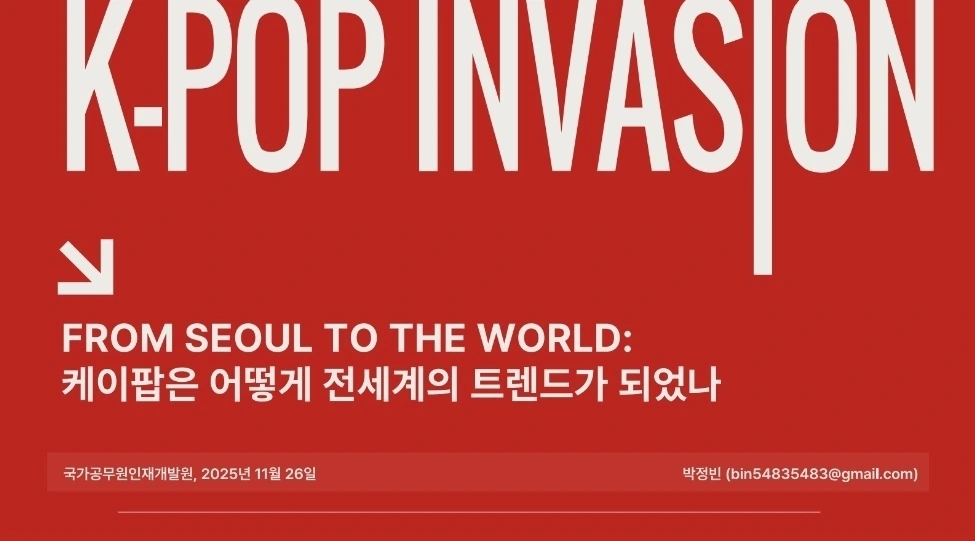 지난 11월 26일, 이재명 정부의 K-컬처 진흥사업의 일환으로 국가공무원인재개발원의 K-이니셔티브 교육과정에 강사로 초빙되어 K-콘텐츠의 현황 및 사례에 대해 강의했습니다.