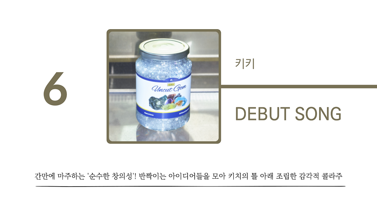 아이브(IVE)의 성공으로 제2의 전성기를 맞은 스타쉽엔터테인먼트가 새롭게 출범시킨 걸그룹 키키(KiiiKiii)의 데뷔 타이밍은 다소 이른 감이 있었다. 아이브의 데뷔 이후 사실상 3년 남짓한 짧은 간격을 두고 데뷔했기 때문이다. 이 정도로 단기간에 한 회사에서 걸그룹을 두 개나 런칭하는 일은 정말 이례적인데, 아마 장원영과 안유진의 재계약 협상 실패시를 염두에 둔 것으로 보인다. 이처럼 다분히 자본의 이해득실이 개입된 듯 당혹스럽고 의아한 데뷔였지만, 그들의 첫 앨범 [UNCUT GEM]은 기존 스타쉽의 제작 기조와 완전히 다른 해상도의 만듦새로 의심의 시선을 불식시켰다.