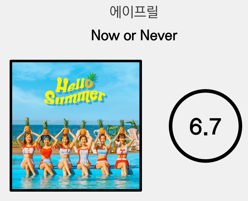 인트로에는 기타, 벌스에서는 밝고 가벼운 신스, 프리코러스에서는 높은 톤의 브라스, 코러스에서는 낮은 톤의 브라스로 다양한 악기를 번갈아 가며 활용하는 'Now or Never'는 다소 산만하지만 그런 대로 들어줄 만한 싱글이다. 트와이스의 'Dance The Night Away'나 오마이걸의 '번지'와 같은 타 걸그룹의 서머송과 비교하면 그 멜로디의 힘이 약하지만 기준점 이상의 캐치함은 갖추고 있다.