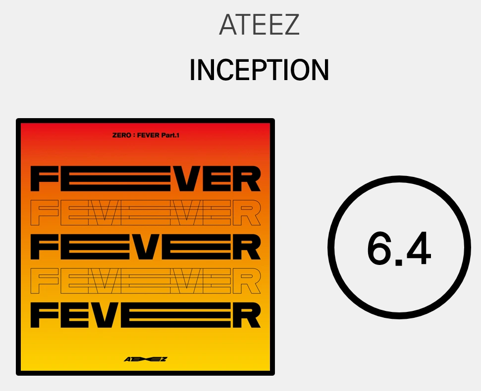 뚝심 있게 EDM 뮤직을 지향해 온 보이그룹 ATEEZ (에이티즈)의 새로운 싱글 'INCEPTION'은 공간감 넘치는 사운드와 풍부한 베이스를 가진 곡이다. 다소 갑작스레 트랜스풍의 리듬으로 바뀌는 간주는 조금 당황스럽지만, 날카로운 질감의 신스를 꽉꽉 채운 드랍은 청자를 만족시킬 만큼 충분히 파워풀하다. 그러나 가성을 넘나들며 몽환적인 분위기를 자아내는 'I'm in love' 파트를 제외하면 전작에 비해 멜로디의 캐치함이 덜해 트랙은 다소 애매한 맛으로 남는다.