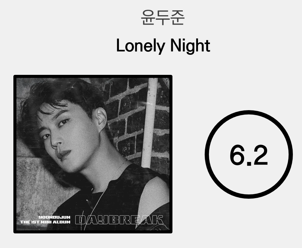 윤두준의 홀로서기를 알리는 싱글 'Lonely Night'은 아쉽게도 그의 이름 석 자를 각인시키기에는 너무나도 평이한 곡이다. 재미있는 드럼라인이나 매끈한 사운드 디자인은 깔끔하지만 매력을 느끼기에는 어렵다. 무난하게 흘러가는 코러스도 마찬가지다. 윤두준이 소속된 하이라이트라는 팀도 음악적으로 개성 있는 행보를 보여준 적은 없었지만, 솔로곡에서까지 이러면 곤란하다.