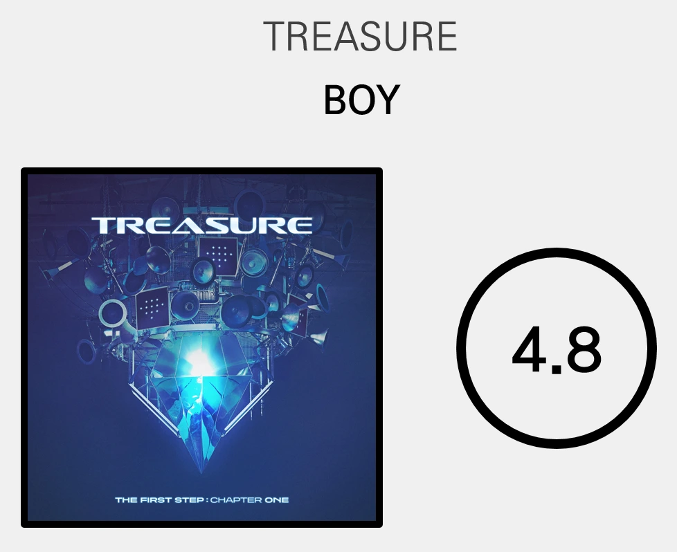 참으로 오래 걸렸다. 2018년 11월 방영된 YG엔터테인먼트의 서바이벌 프로그램 'YG 보석함'을 통해 데뷔한 TREASURE(트레저)의 데뷔곡 'BOY'는 어째서 이 정도 수준의 곡을 위해 그토록 오랜 시간이 필요했는지 의문을 가지게 한다. 거친 질감의 신디사이저를 활용한 벌스 끝에 다다른 드랍은 블랙핑크의 'How You Like That'을 망쳐 놓았던 '뽕끼' 넘치는 멜로디로 실망만을 안긴다. 후반부 변주를 통해 분위기를 환기시키려 하지만 부자연스러운 이음새 때문에 어색하게 다가올 뿐이다. YG 정도 되는 체급의 회사가 사운을 걸고 데뷔시키는 그룹의 첫 페이지가 고작 이 정도라니 초라하기 그지없다. 이런 결과물을 '보물'이라고 칭하는 것은 오만하다.
