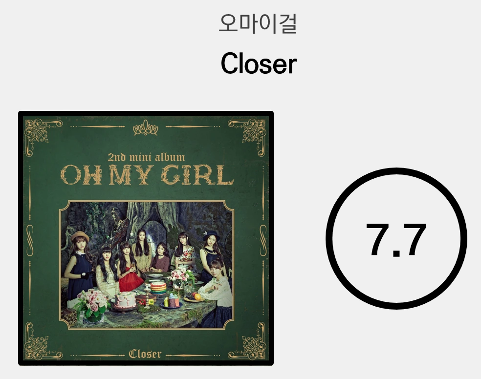 오마이걸이 본격적으로 이름을 알리기 시작한 'Closer'는 오마이걸답게 평범한 노래는 아니다. 유아의 애절한 보컬로 시작해 웅웅대는 신스가 신비로운 무드를 조성하고 몽환적인 멜로디의 후렴이 등장하는 깔끔한 구성은 상당한 완결성을 보인다.