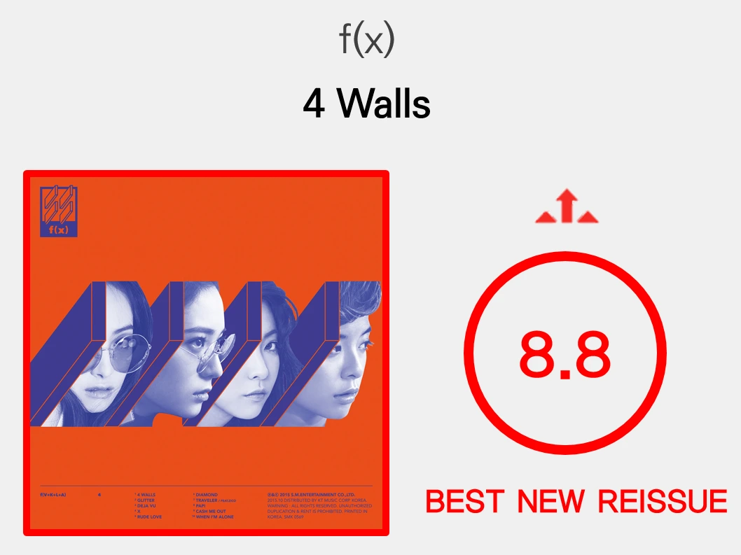 이 노래가 발매된 2015년 이후로 한국 대중들은 드디어 비트에도 귀를 기울이기 시작했으며, 변화한 요구에 따라 세계 시장에도 꿀리지 않을 만큼 세련된 사운드를 가진 트랙들이 K-POP 씬에 점차 등장하게 된다. 이것이 가능했던 것은 '4 Walls'(그리고 'View')가 후렴에 익숙한 후크송의 요소를 배치함으로써 비트 중심의 딥하우스라는 낯선 장르의 이질성을 완화했기 때문이다. 이는 동시에 커리어 내내 난해한 실험성과 대중성 사이에서 진통을 겪던 f(x)의 기분 좋은 마지막 성과이기도 하다. 자신들의 음악적 여정이 멋지게 마무리되었다는 것을 스스로도 알고 있는지, 그녀들은 이 앨범을 끝으로 명예롭게 박수를 받으며 떠나는 길을 택했다. 이렇게 f(x)는 K-POP 역사에서 가장 완전하고 서사적인 디스코그래피를 완성한 팀으로 남았다.