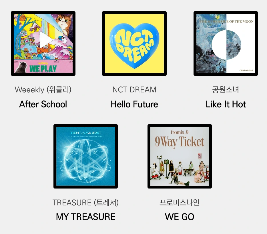 * 앨범의 타이틀곡 또는 싱글컷된 곡만을 선정 대상으로 하였습니다. 따라서 수록곡들은 선정 대상에 해당하지 않습니다.
