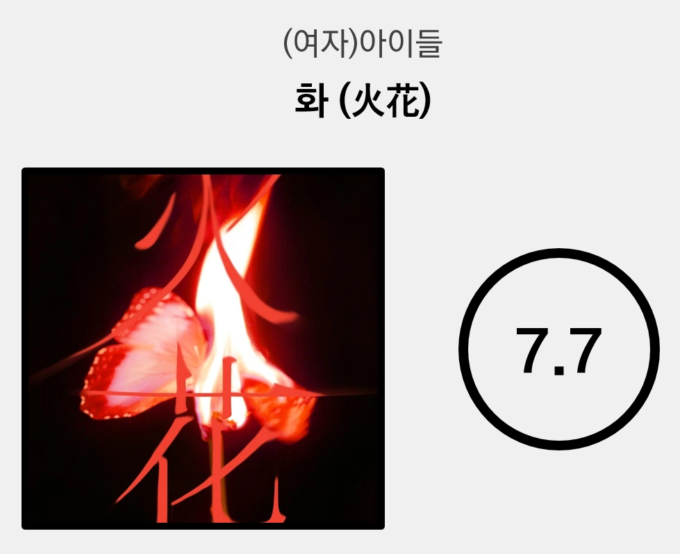 불꽃이 그려진 앨범 커버와 제목과는 달리 '화'는 얼어버릴 듯 서늘하고 차가운 분위기의 곡인데, 이러한 반전 양상은 음악 내에서도 계속된다. 무거운 808 베이스는 도입부부터 청자의 귀를 강하게 잡아끌고, 여러 동양적 사운드 소스들은 뭄바톤 리듬과 조화롭게 어우러지며 여지껏 없었던 깊은 몰입을 유도한다. 전소연은 동양풍 콘셉트라는 이유로 전통 악기에 국한되지 않고 타 장르의 다양한 요소를 자유롭게 가져와 융합시킨다. 이 과감한 크로스오버는 오직 그녀만이 가진 유니크한 작곡 재능이다. 그리고 바로 그것이 (여자)아이들이 여러 콘셉트를 시도하면서도 변화에 매몰되지 않고 성공가도를 달려올 수 있었던 이유다. '화'를 통해 우리는 (여자)아이들이 얼마나 특별한 팀인지를 다시금 깨닫게 된다.