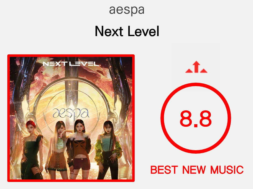 공간 변화와 서사의 흐름에 따라 선명하게 변주되는 'Next Level'의 사운드는 K-POP의 하이브리드적 성질을 극대화하여 전례 없는 몰입을 선사한다. 에스파는 길고 복잡한 세계관 이야기를 주저리 주저리 늘어놓지 않는다. 단지 변화무쌍한 음악과 상징적인 노랫말로 청자를 자연스레 SMCU의 세계로 끌어들일 뿐이다. 멜론(Melon) 차트 개편 이후 걸그룹으로서는 최초로 24Hits 차트 1위를 차지한 눈부신 성과가 이미 대중 역시 에스파의 광야에 초대되었음을 증명한다.