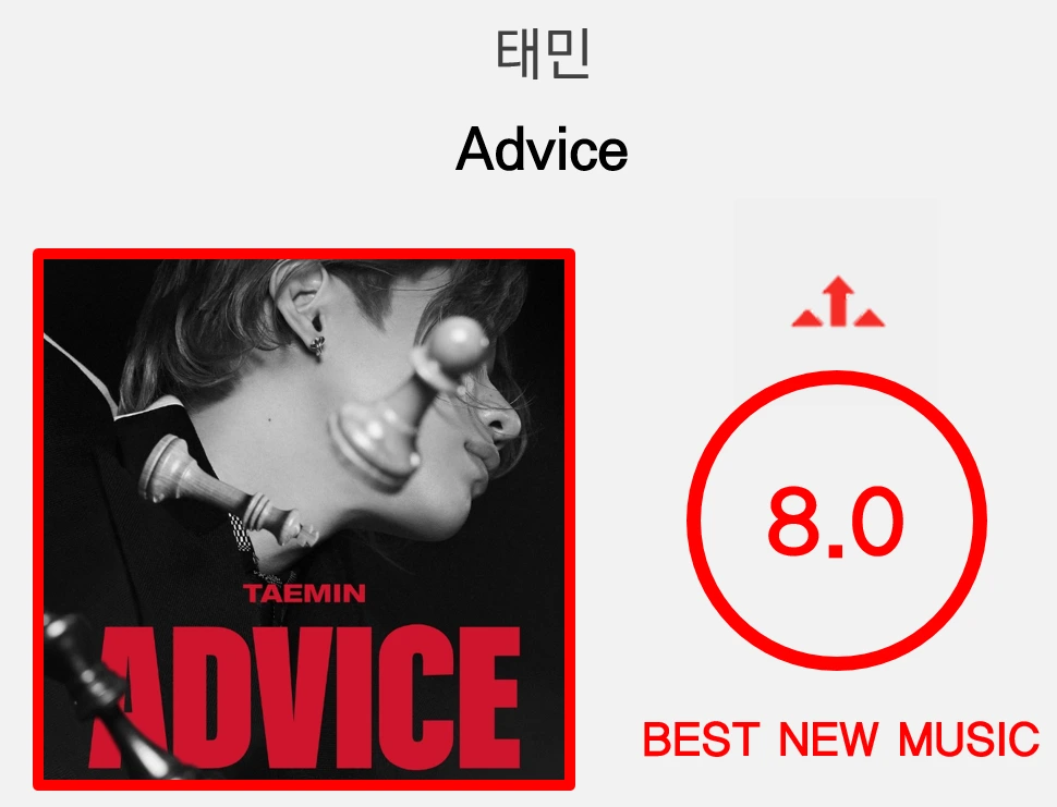 태민이 입대 전 마지막으로 선보이는 'Advice'는 그 중성적 속성에 본격적으로 접근하는 곡이다. 일반적으로 걸그룹이 입을 법한 짧은 크롭티를 입고 긴 머리를 휘날리며 춤을 추는 태민의 무대에서는 남성과 여성의 오랜 이분법이 허물어지고 단지 압도적인 카리스마의 퍼포먼스만이 오롯이 남을 뿐이다. 때문에 원곡의 여자 키를 그대로 가져와 앙칼진 가성으로 소화해 내는 파격적인 후렴 역시 자연스러운 내러티브의 연장선상에서 태민이라는 탈이분법적 아티스트의 증거로서 작용하게 된다. 광기어린 목소리로 진성과 가성, 랩과 보컬을 넘나들며 장엄한 콰이어와 피아노 아르페지오 위를 자유분방하게 뛰노는 과감한 프로덕션은 그의 비전에 한층 힘을 싣는다.