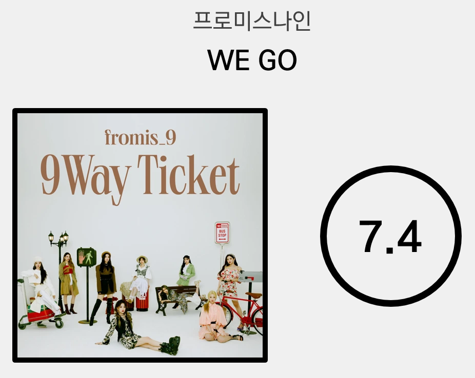 이 열풍을 타고 한때 방영되었던 Mnet의 또다른 오디션 프로그램 <아이돌학교>의 데뷔조로 결성된 프로미스나인 역시 이렇게 방송을 통해 탄생한 그룹이 대부분 그러하듯 큰 거부감 없이 즐길 수 있는 가벼운 이지리스닝 음악을 지향하는 팀이다. 그리고 파격적인 음악과 자극적인 콘셉트 없이 '듣기 좋은 노래' 라는 한 우물만을 파온 그들의 노력은 비로소 커리어 하이 트랙, 'WE GO'를 만나 꽃을 피우게 된다. 군더더기없이 짜여진 웰메이드 팝 넘버 'WE GO'는 펑키한 베이스와 기타 위로 자연스럽게 펼쳐지는 멜로디가 인상적인 트랙이다. 매끈하게 다듬어진 각 섹션들은 그 이음새를 눈치채지조차 못할 만큼 부드럽게 맞물리며 여행의 낭만을 감각적으로 담아낸 가사는 코로나 시대의 우울을 물리친다. 이렇게 대중가요로서의 기본에 충실한 음악이 줄어가는 이 시국에 여러모로 의미 있게 다가오는 트랙. 하이브(HYBE) 레이블로 이적해 새 여정의 출발점에 선 프로미스나인의 향후 행보를 진심으로 기대해 본다.