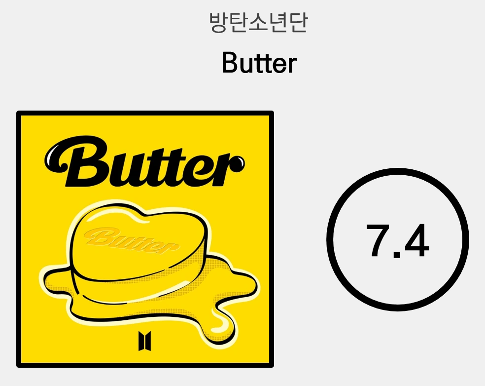 'Butter'가 경이로운 흥행을 기록할 수 있었던 데에는 그들이 가사에서 언급한 것처럼 ('Got ARMY right behind us when we say so') 팬덤 아미(ARMY)의 충성스런 서포팅의 덕이 가장 크겠지만, 트랙 자체가 가진 압도적인 매력 역시 무시할 수 없다. 미니멀한 비트로 포문을 열고 펑키한 신디사이저를 적재적소에 운용하는 프로덕션은 전작 'Dynamite'보다도 훨씬 뛰어난 완급 조절을 보여 주며, 왕년의 팝 스타 어셔(Usher)나 ('Don't need no Usher / To remind me you got it bad') 1960년대의 미국 보드 게임 트러블(Trouble)을 언급하는 유머러스한 가사 ('Gon' pop like trouble')는 미국인들의 향수를 자극하여 자연스럽게 폭넓은 공감대를 형성한다.
