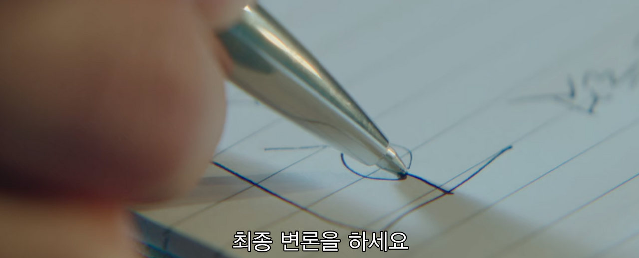 주지훈은 법정을 돌아다니면서 최후변론을 하고 있는데 실제로는 이런 일은 없다. 그냥 자기자리에서 서서 말하고 만다. 그게 재판매너다. 주지훈처럼 왔다 갔다 하면서 쇼 하듯이 변론하면 재판부나 검사가 되게 이상하게 볼 것 같다. 재판부는 왜 그러시냐고 하면서 자리로 돌아가라 할 듯.