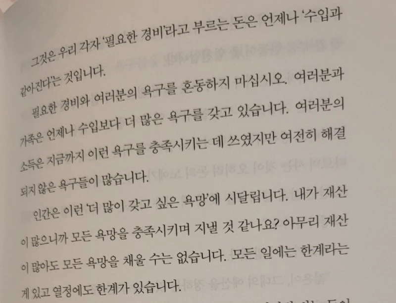 돈이 아무리 많아도 욕망을 채울 수 없듯이 늘어난 월급으로 그 욕망을 좀 더 채우고 있던 것 아닐까 생각이 들었습니다.