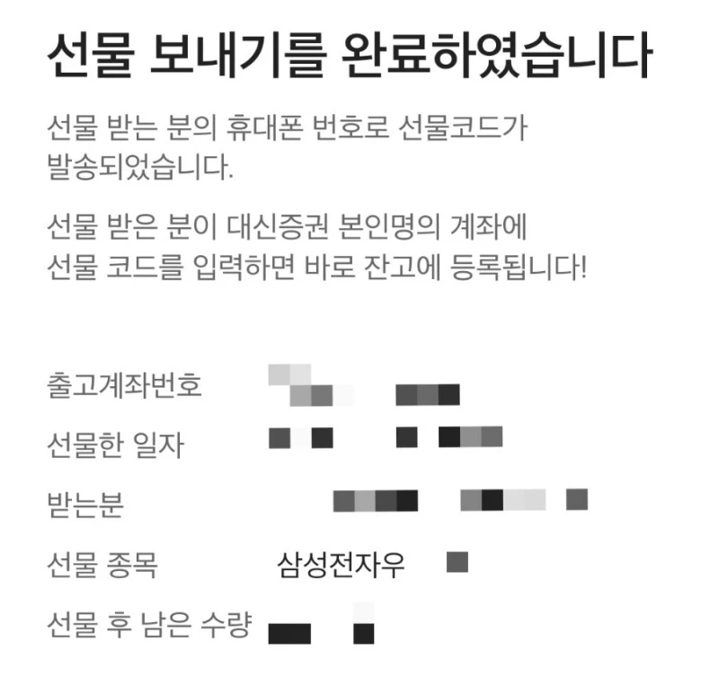 주식은 배당률이 더 높은 '삼성전자우'를 선물했습니다.