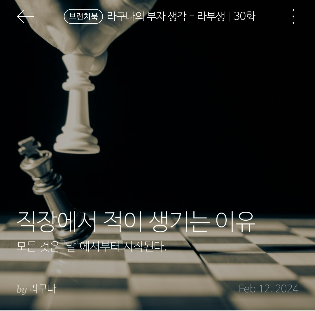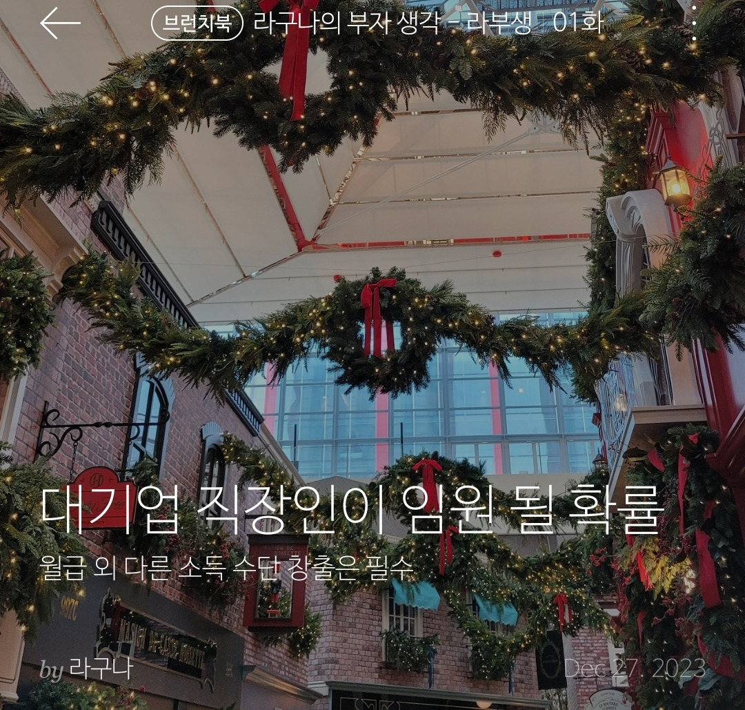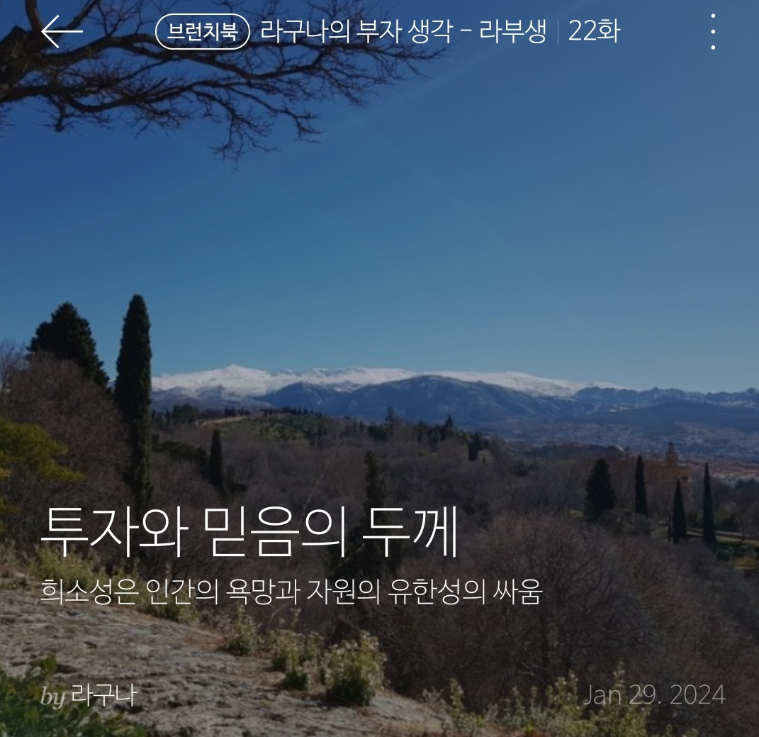 '23년 12월 27일에 연재를 시작한 '라구나의 부자 생각-라부생'은 '24년 2월 12일부로 종료되었습니다.