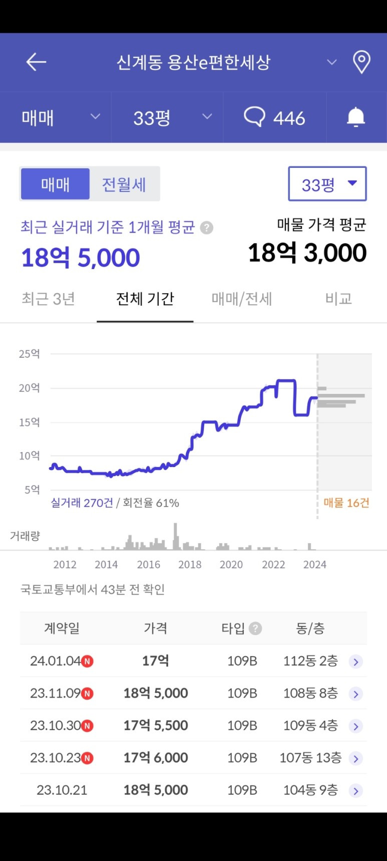2017~2018년 상승장에 Gap으로 투자하신 분들이 아니라면 사실상 사회 초년생이 바로 매수하기에는 힘든 가격입니다.