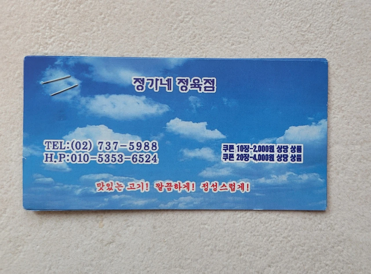 기존에 다른 정육점을 이용할 때는 요즘 디지털 사회다 보니 모두 핸드폰 뒤자리를 부르면 적립을 해주는 시스템인데 이렇게 쿠폰으로 주시니 시대에 못 따라가시는 영업을 하시는 게 아닌가 생각을 했습니다.