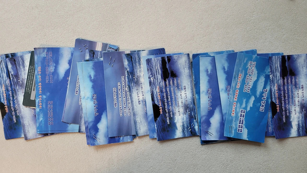 한 장에 200원짜리를 저렇게 스테이플러로 거칠게 찍으셔서 주십니다.
