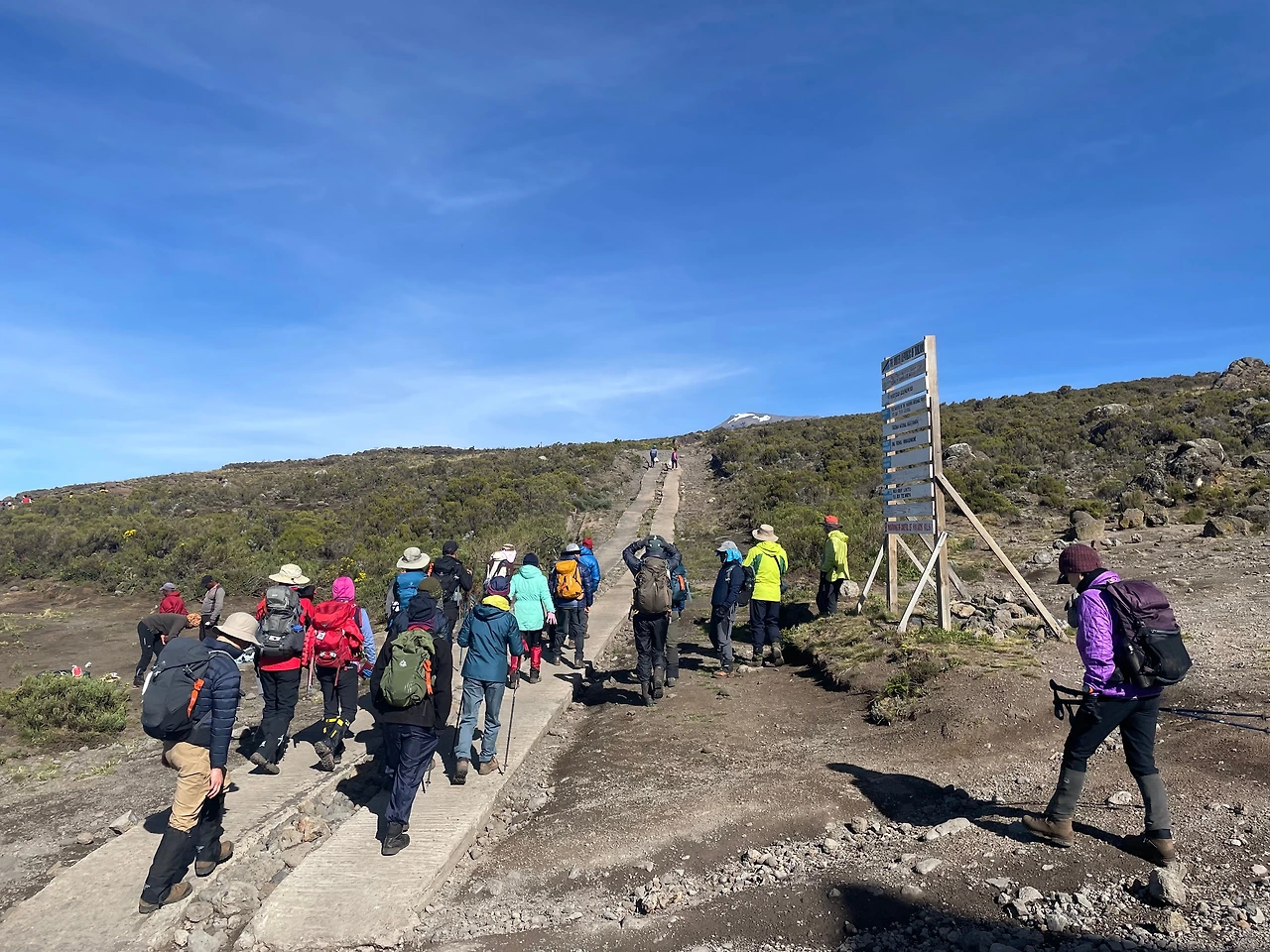 하늘은 우리를 또 돕는지 아주 맑았다. 오늘도 7시간 정도 걸으면 된다. 저 멀리 킬리만자로를 바라보며 사막화된 길을 걷고 또 걷는다. 걷다 보면 중간중간 휴식을 가질 수 있는 공간도 마련되어 있다.