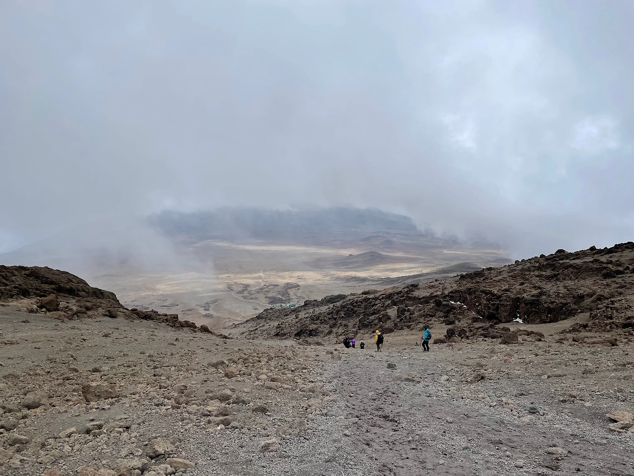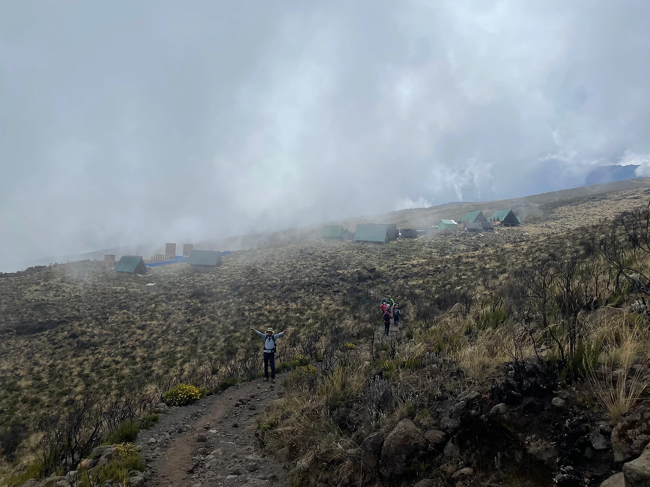 키보 산장에 도착하여 간단히 점심을 먹고 정비를 하고 정상을 밟았다는 기쁨은 뒤로 한 채로 선발대로 바로 내려갔다. 좀 더 쉬면 더 힘들 것 같아서...