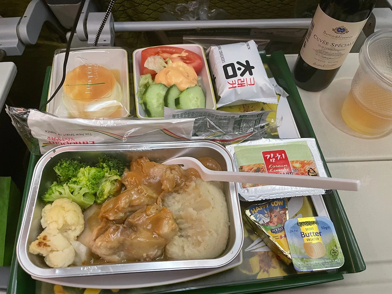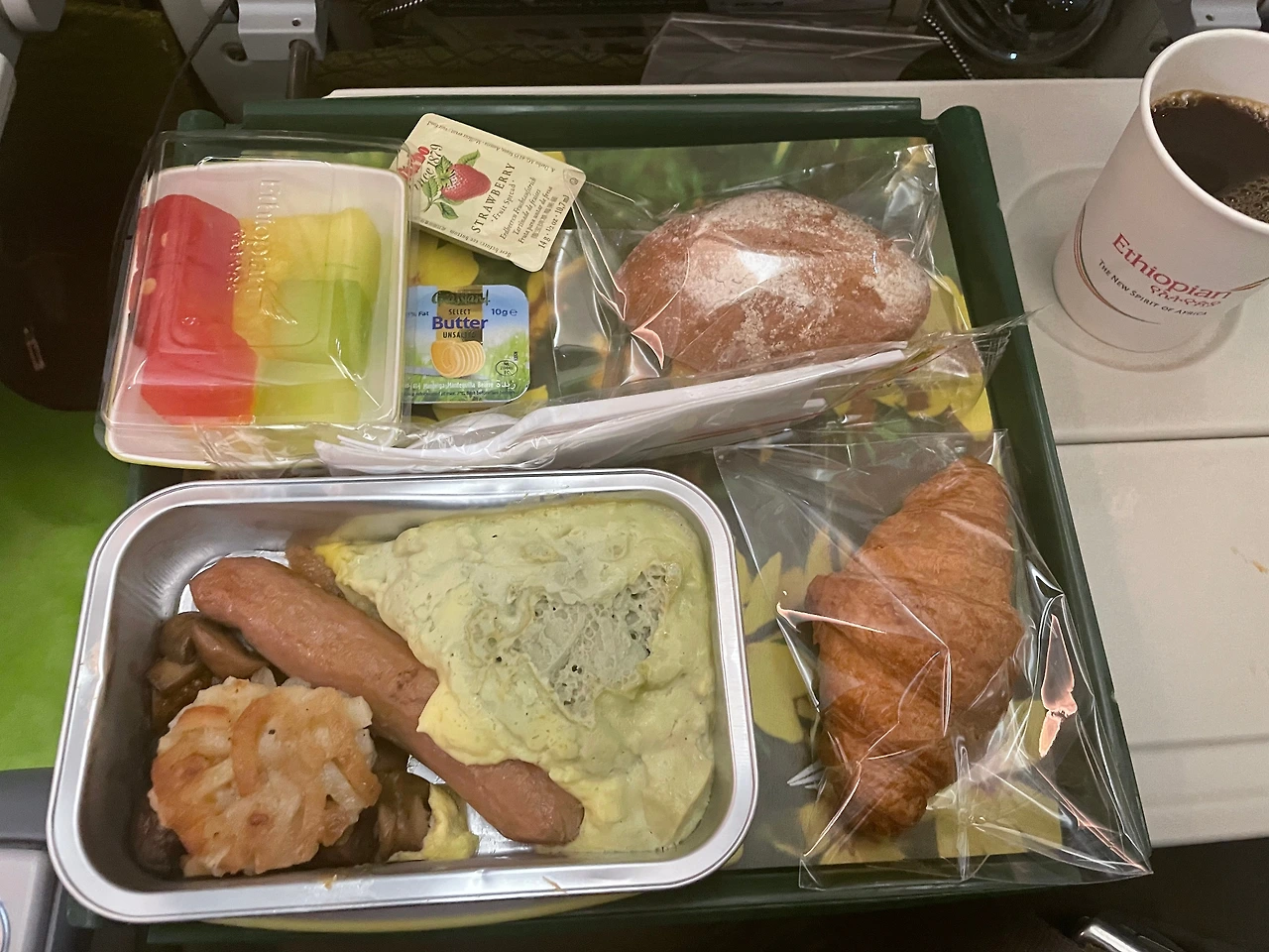 일본에서 출발해서 인천을 경유해서 에티오피아로 향하는 비행기에 약 13시간 몸을 실었다. 중간에 2번 나오는 기내식은 위키에서 처럼 악명 높게 맛없지는 않았다. 작은 플라스틱 병 와인을 줘서 혹시 모를 알코올 부족사태를 위해 킵해두었다.