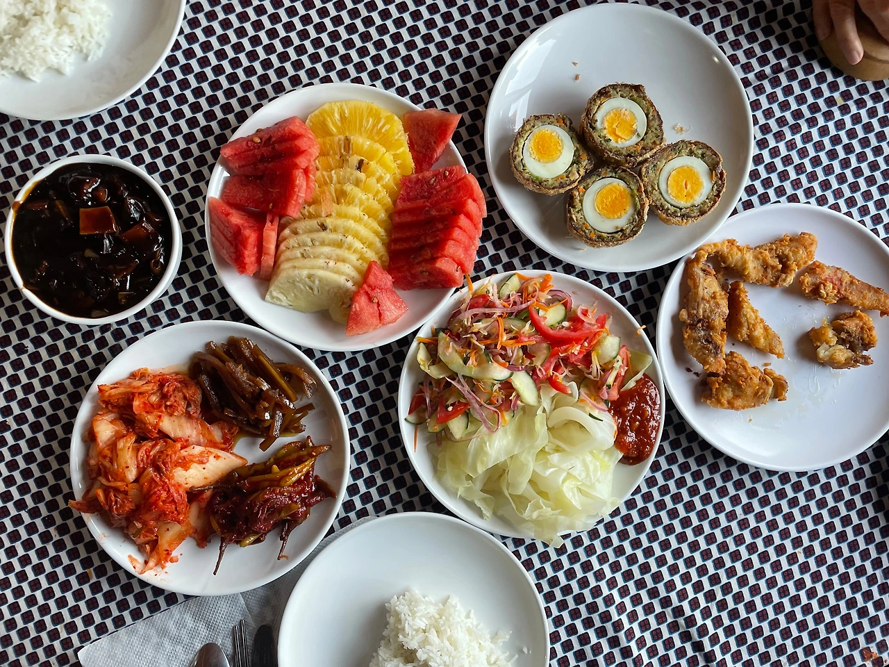 저녁으로는 짜장밥 등, 현지 음식과 과일이 나왔다. 사형수가 죽기 전에 맛난 것을 먹는다는데 이런 느낌일가?