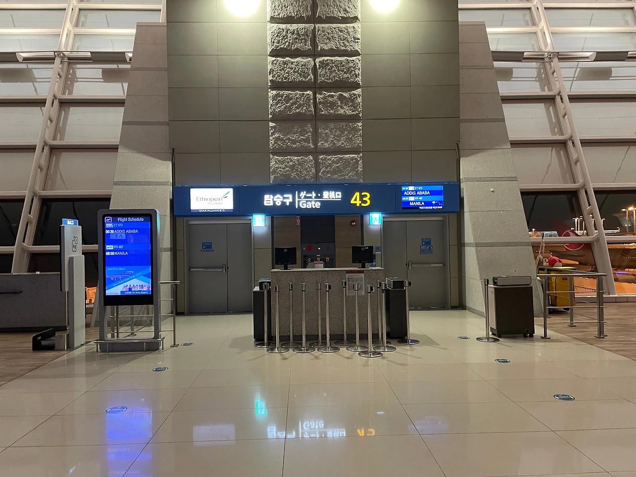 지난 8월 이후 7개월 만의 인천공항 방문, 도착하자마자 여행사 부스로 바로 가서 설명을 간단하게 듣고, 출입국 비행 관련 서류를 받고 에티오피아 항공 부스에서 체크인을 했다. 새벽 시간대에서 라운지도 갈 수 없고, 배는 고파서 24시간 하는 스타벅스에서 커피와 샌드위치를 사서 저녁으로 대충 때웠다.