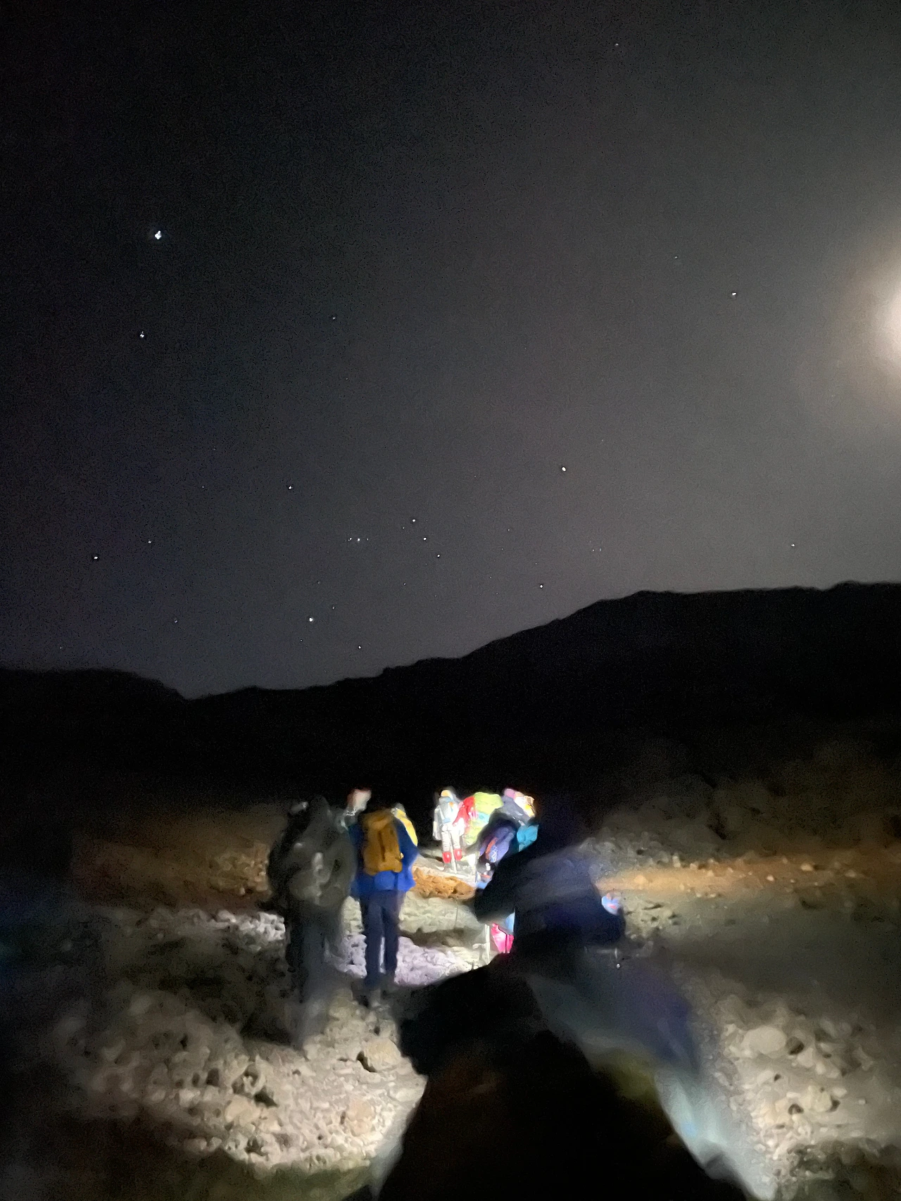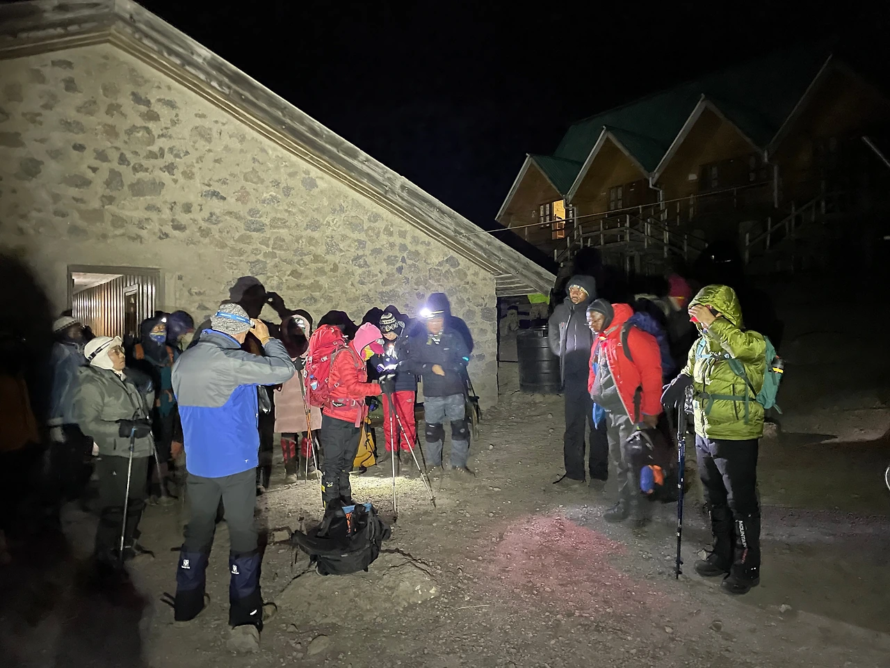 20+2명 그리고 현지 가이드해서 많은 인원이 출발을 한다. 처음부터 몸이 안 좋으면 바로 가방을 가이드에게 맡기면 된다. 헤드렌턴을 켜고 뒷사람 꽁무니만 바라보고 걷는다.