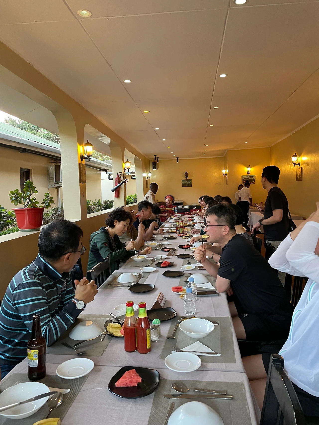 호텔까지는 왕복 2차로의 잘 정비된 도로를 약 1시간 30분 달린다. 도착해서는 방배정을 끝내고 저녁까지 휴식시간이 주어진다. 저녁을 먹으면서 간단히 일행과 이야기를 나누면서 정말 간단한 호구 조사를 하게 되고, 술을 좋아하시는 분들은 술파티를 벌인다. 맥주가 겨우 $3 밖에 안 했다는 걸 알았으면 나도 마시는 건데...