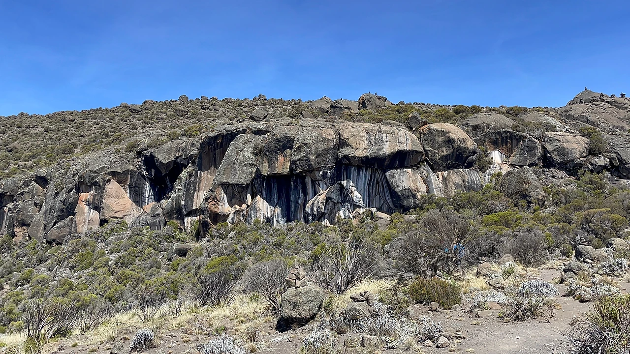 몇 년 전 쓰레기를 태우던 불길이 킬리만자로의 많은 곳을 덮쳐 아직까지 그 흔적이 많이 보인다. 놀라운 자연의 생명력으로 복구가 점점 되어가고 있다.