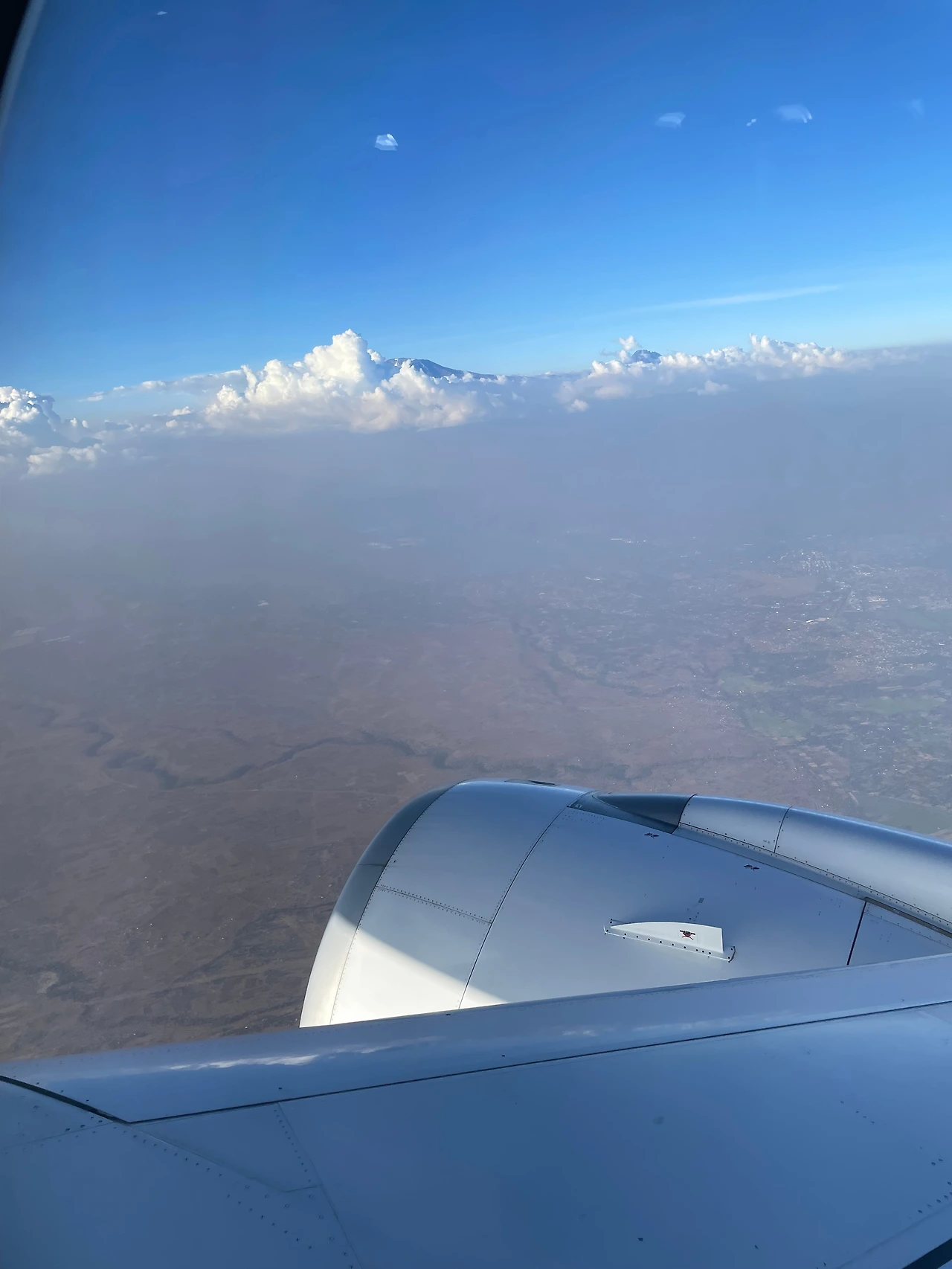 비행기 저 건너편 구름으로 모습을 드러내고 있는 킬리만자로가 보인다. 얼마나 높은 거야? ㅎㅎ