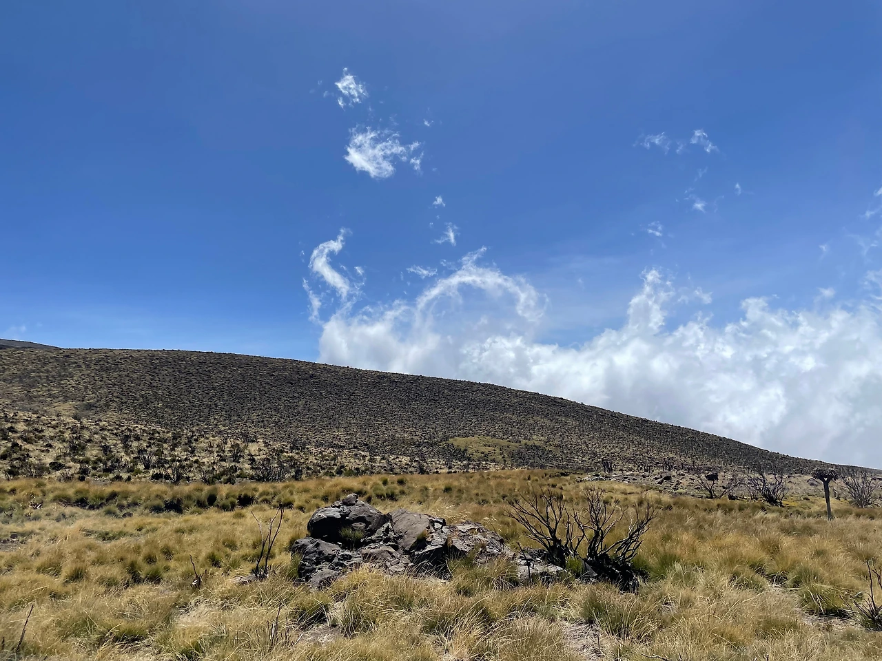 오후 2시 39분, 7시간이 지난 시점에서 저 멀리 오늘의 도착지 호롬보 산장이 보인다.