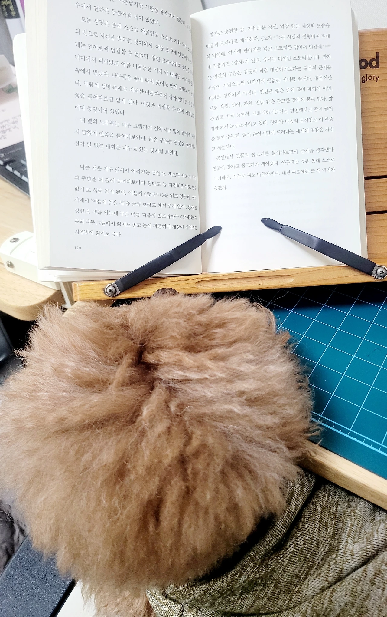 호두를 무릎 위에 앉히고 이틀째 같은 책, 김훈의 《허송세월》을 펼친다.