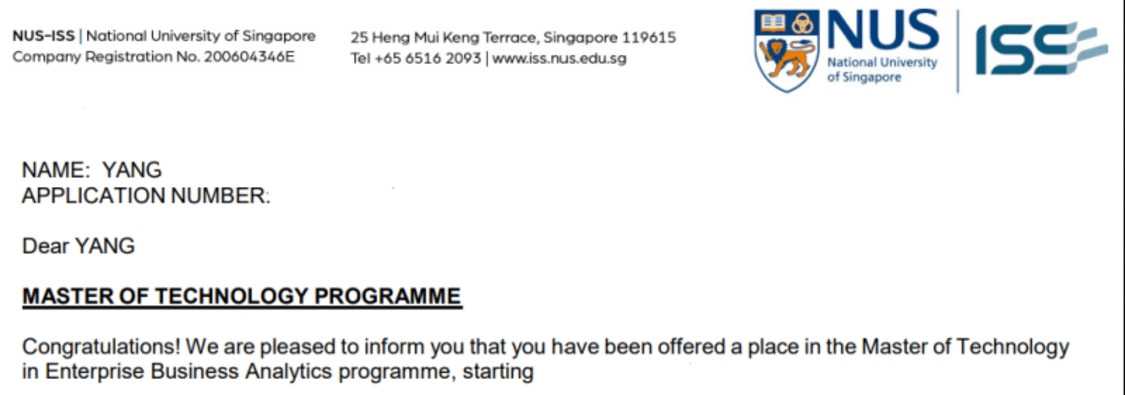 8. NUS MTech EBAC에 합격했습니다.