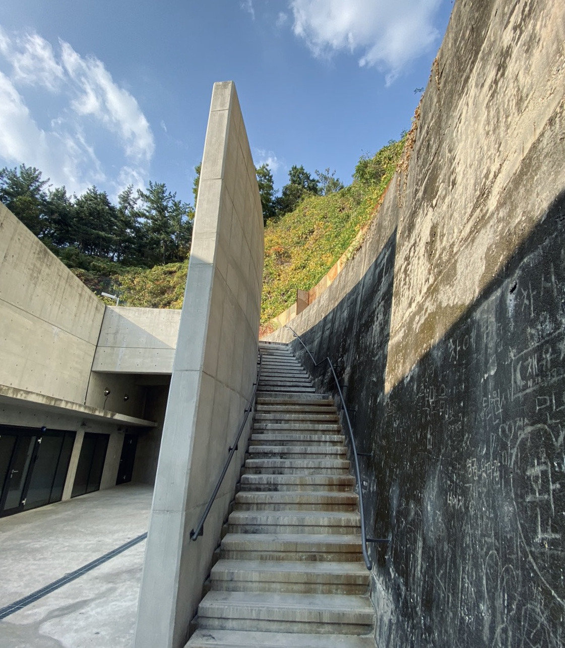 외부 공연장 밑 지하 공간에 마련된 벽면 모습. 글씨가 읽히지 않는다면 좋을 것 같다.